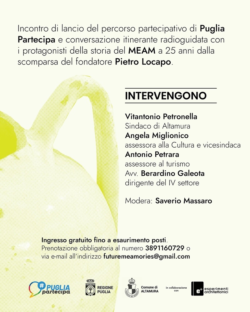 Incontro di lancio del percorso partecipativo Future MEAMories, cofinanziato da PugliaPartecipa.